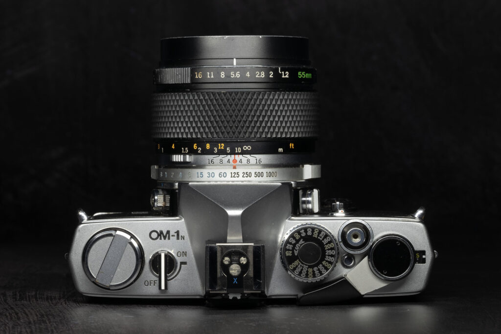 The OM-1 has a mechanical shutter and an electronic meter. There are no automatic modes, and the range of shutter speeds and other features are pretty typical to the era. Shutter speeds range from 1 second to 1/1000, plus a bulb setting for longer exposures. Film speeds are modest by today’s standards, from ASA 25 to 1600. Consider for a moment that in that era, film speeds were lower, with Kodachrome 25 and 64 being popular color slide films. Kodak’s Panatomic X (ASA 32) and Plus-X (ASA 125) were hot in the monochrome market. Tri-X was considered a high-speed film at ASA 320 and 400.