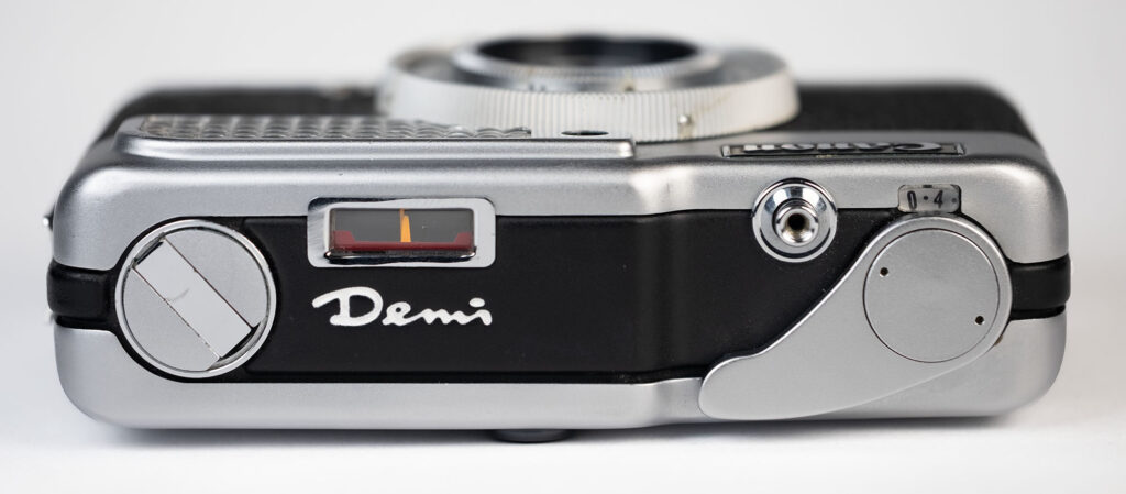 Speaking of weight, the Demi does not feel delicate. It feels like a proper camera. Weighing in at 386g (13.6oz), it feels compact yet dense. Metal dominates its construction, with a chrome plated brass body and very little plastic on the exterior. The film takeup spool and sprocket are plastic, however.